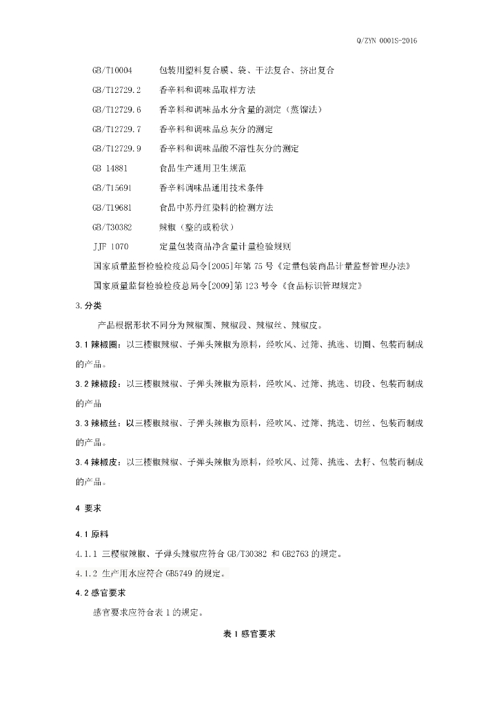 Q/ZYN 0001S-2016 柘城县永进农副产品有限公司 辣椒调味料