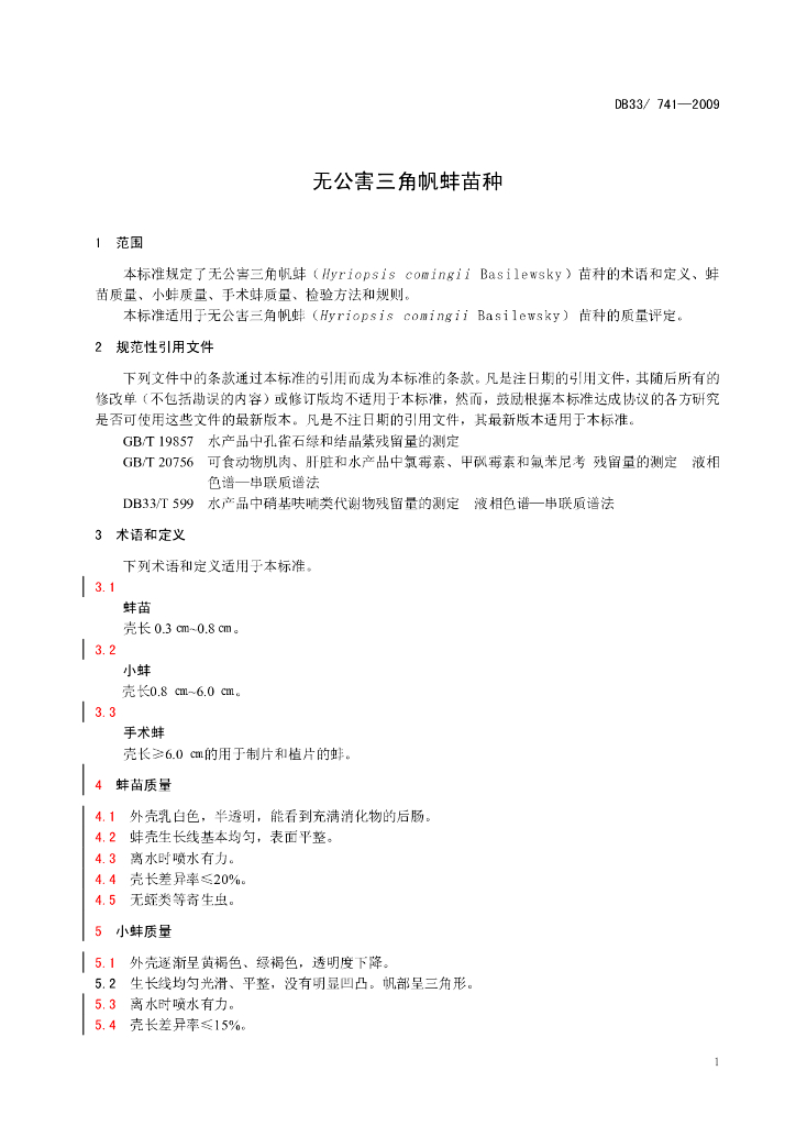 DB33/ 741-2009 无公害三角帆蚌苗种
