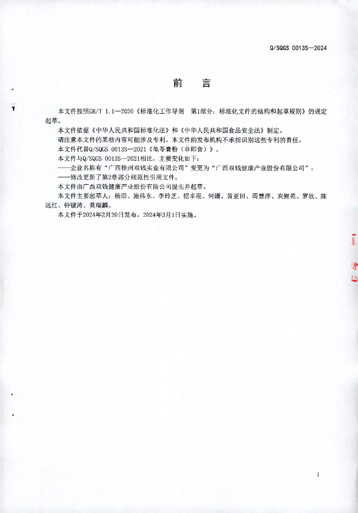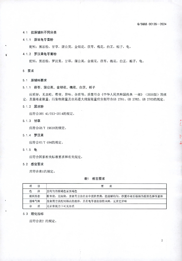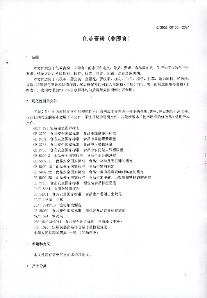 Q/SQGS 0013S-2024 龟苓膏粉(非即食)