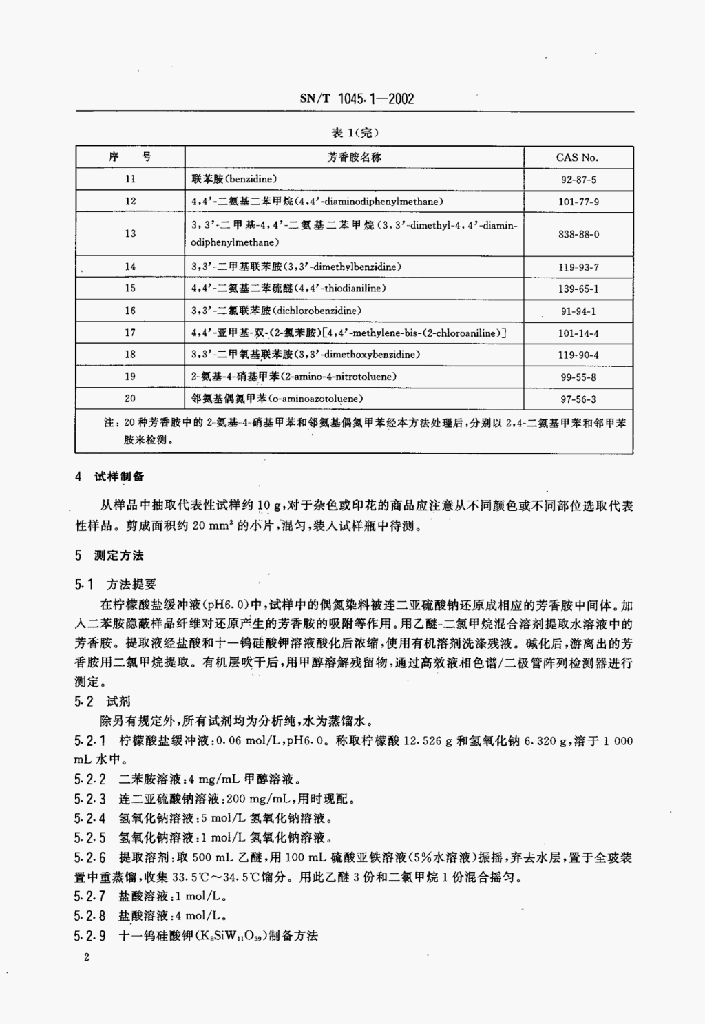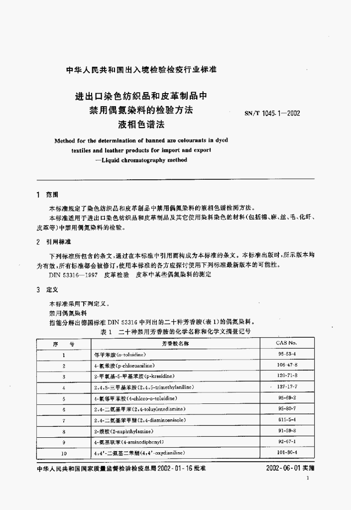 SN/T 1045.1-2002 进出口染色纺织品和皮革制品中禁用偶氮染料的检验方法液相色谱法