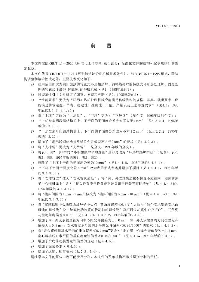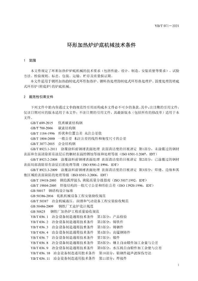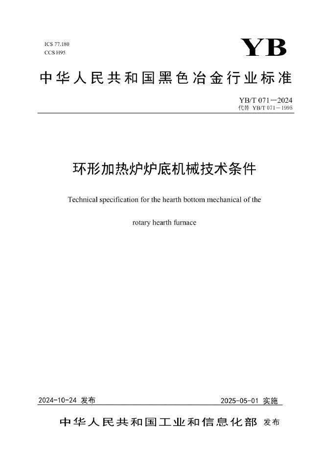 YB/T 071-2024 环形加热炉炉底机械技术条件