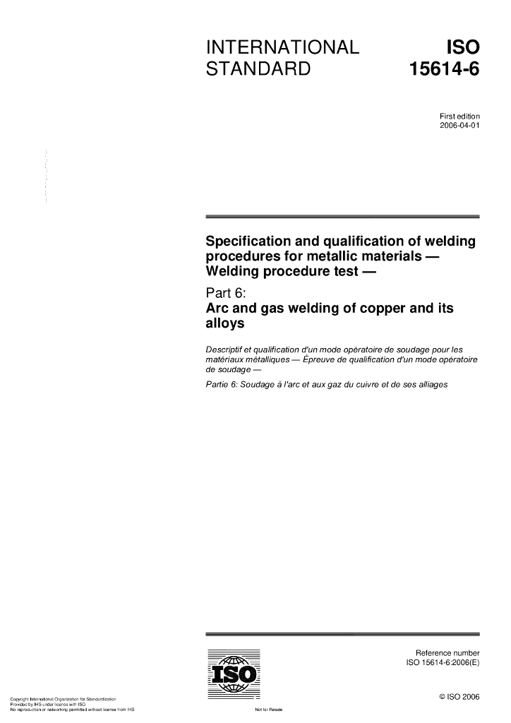 ISO 15614-6-2006 金属材料焊接程序的规范和鉴定.焊接程序试验.第6部分铜及其合金的电弧焊接和气焊