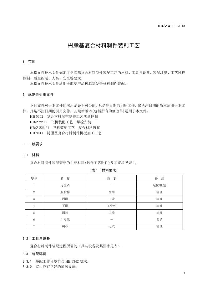 HB/Z 411-2013(2017) 树脂基复合材料制件装配工艺