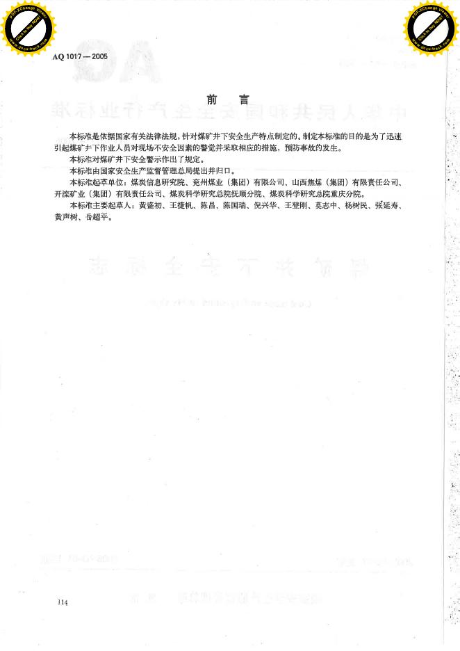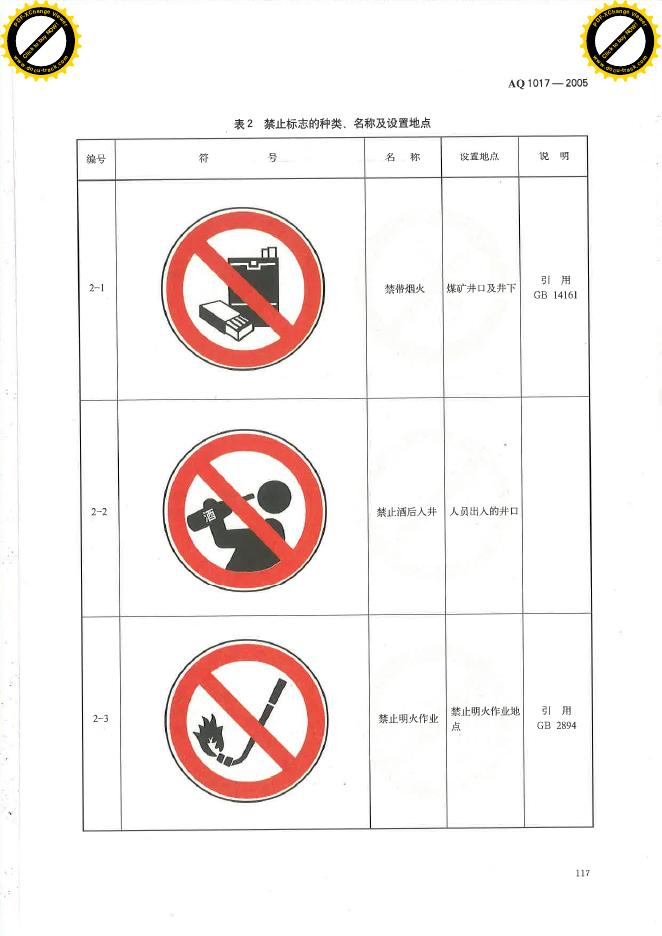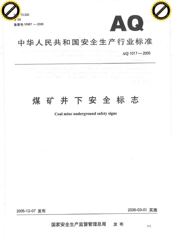 AQ/T 1017-2005 煤矿井下安全标志