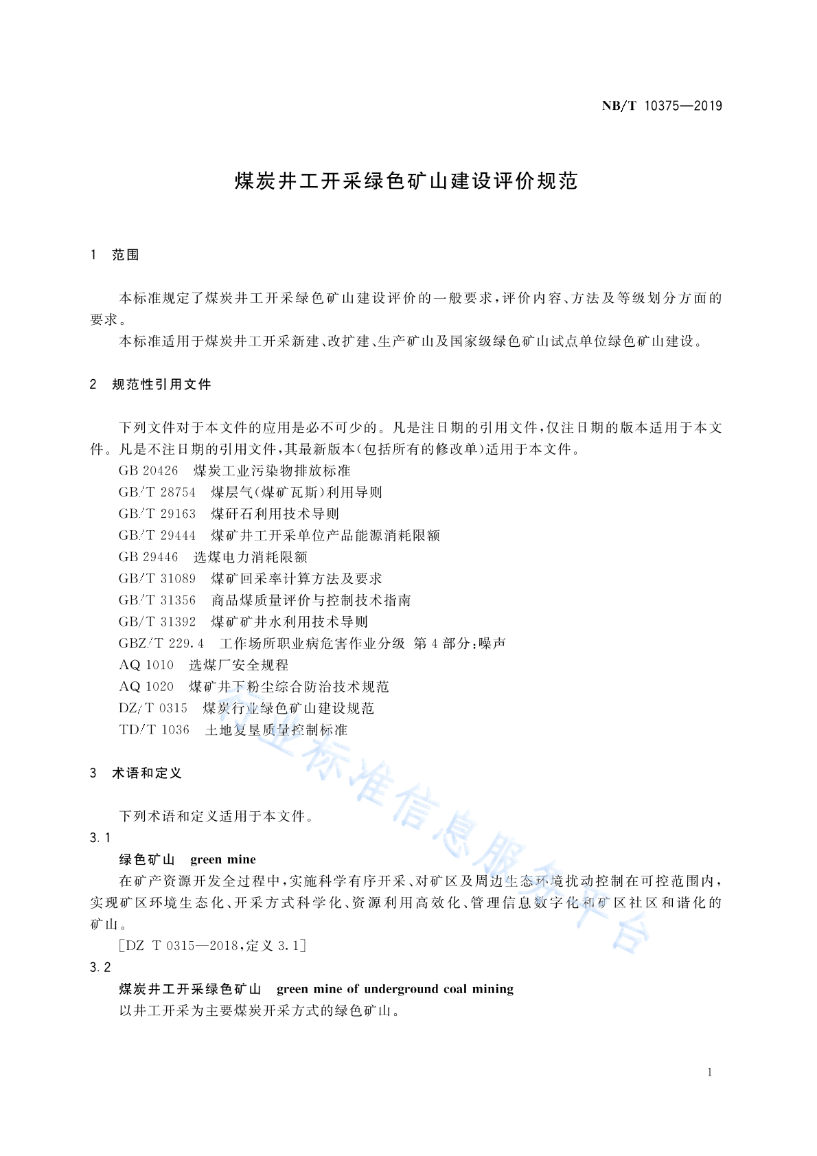 NB/T 10375-2019 煤矿井工开采绿色矿山建设评价规范