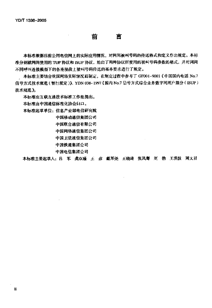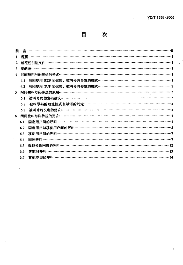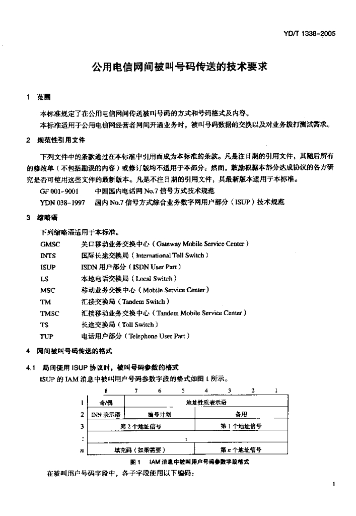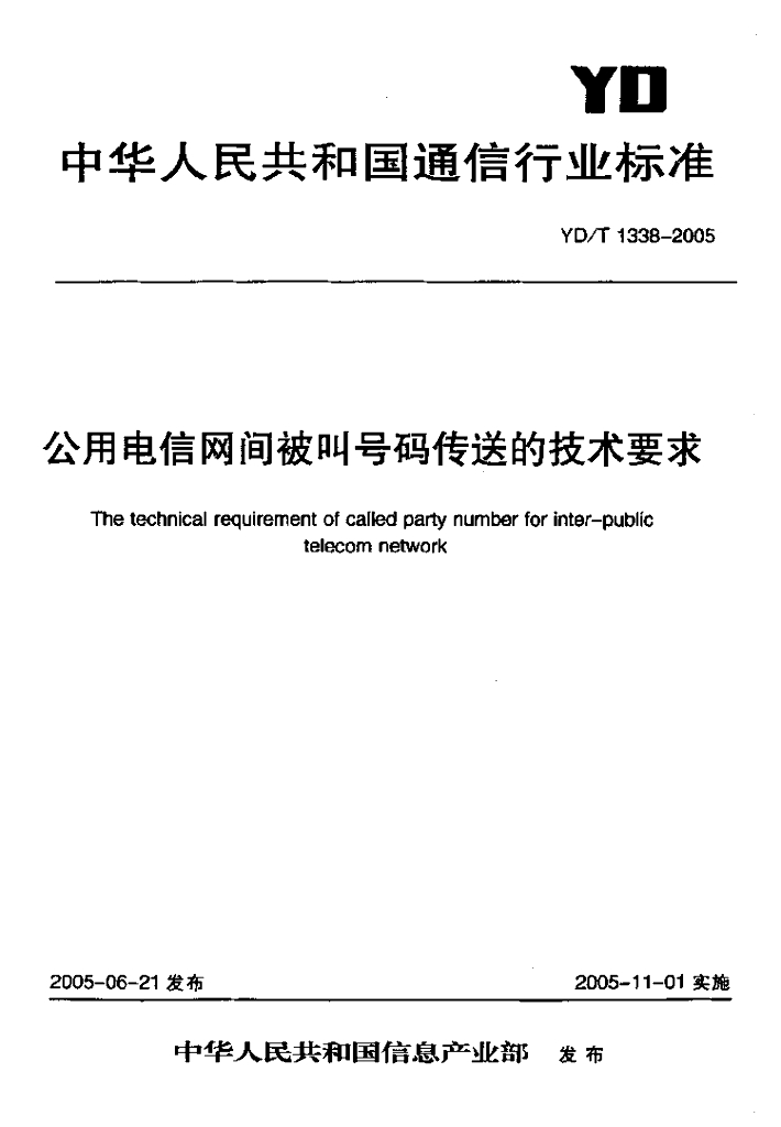 YD/T 1338-2005 公用电信网间被叫号码传送的技术要求