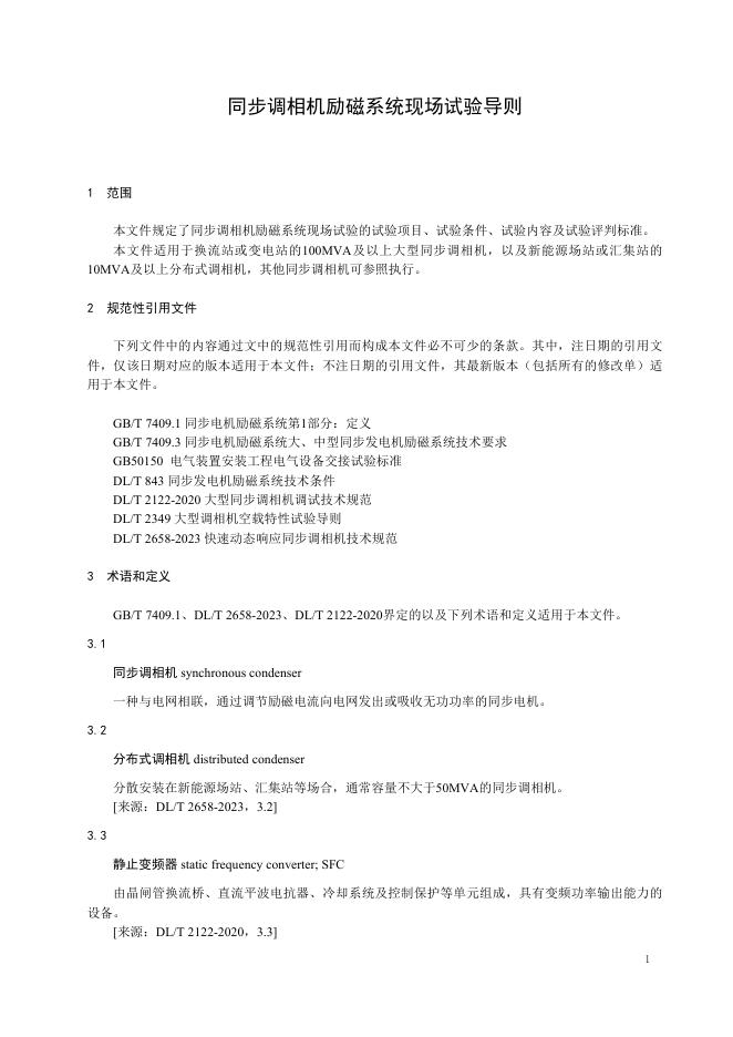 DL/T 2948-2025 同步调相机励磁系统现场试验导则