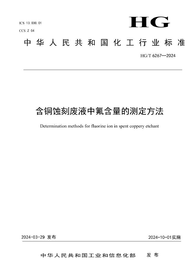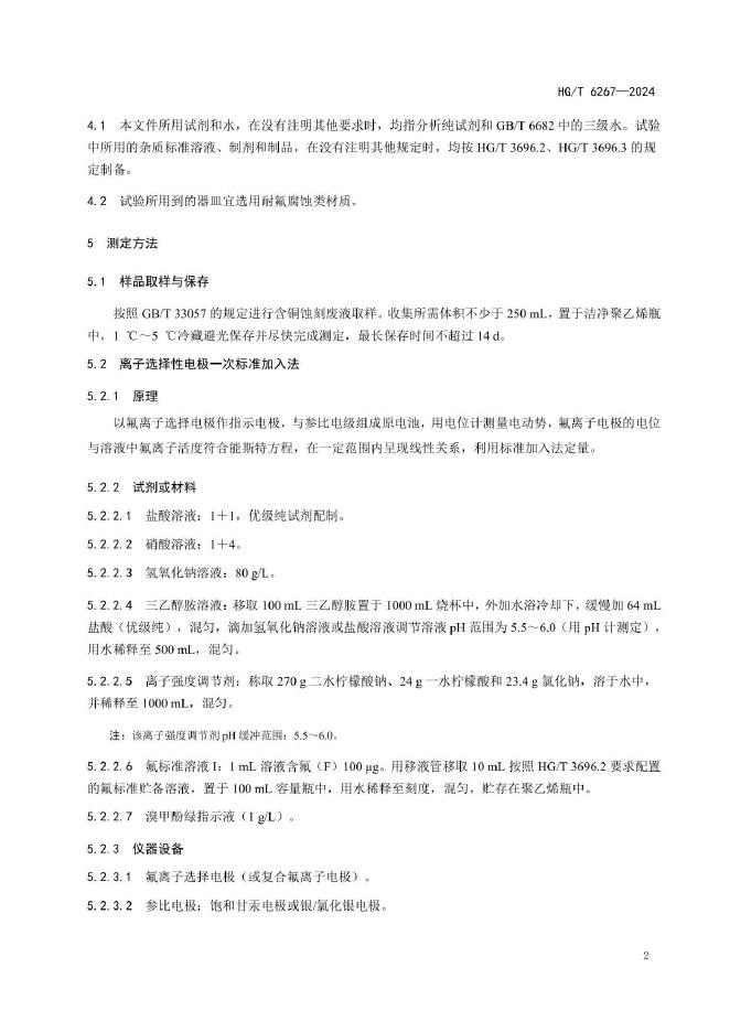 HG/T 6267-2024 含铜蚀刻废液中氟含量的测定方法