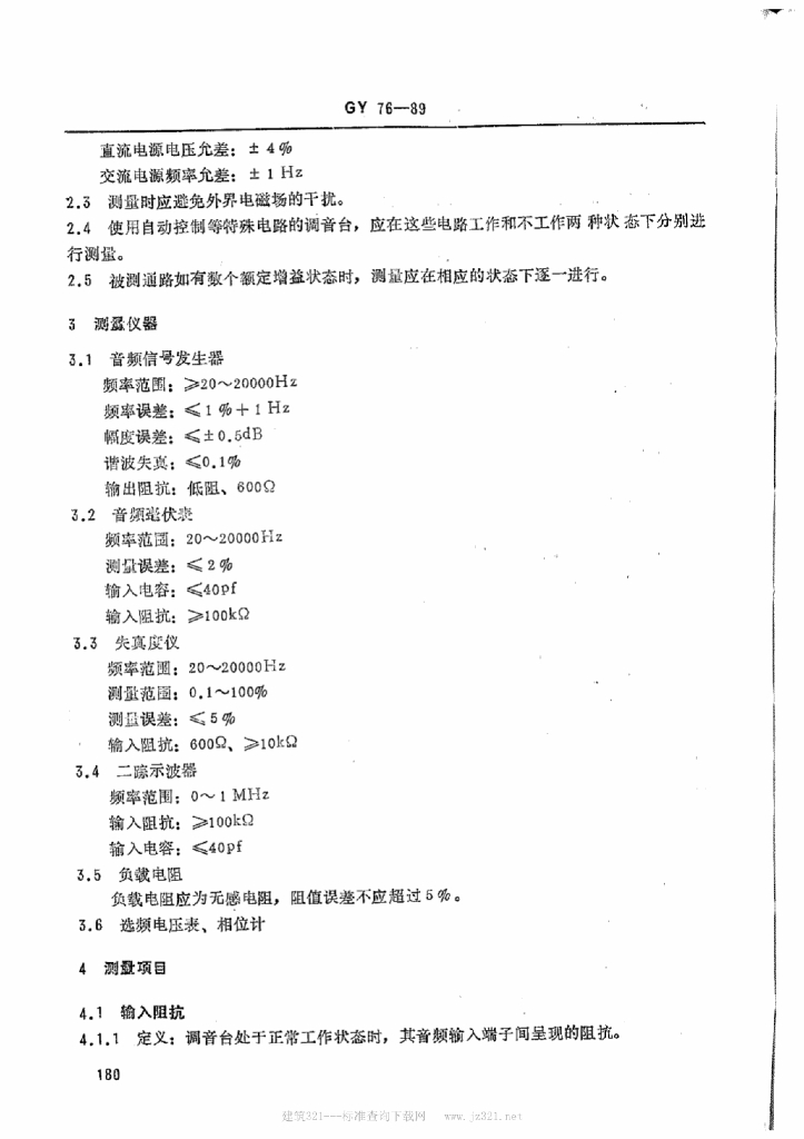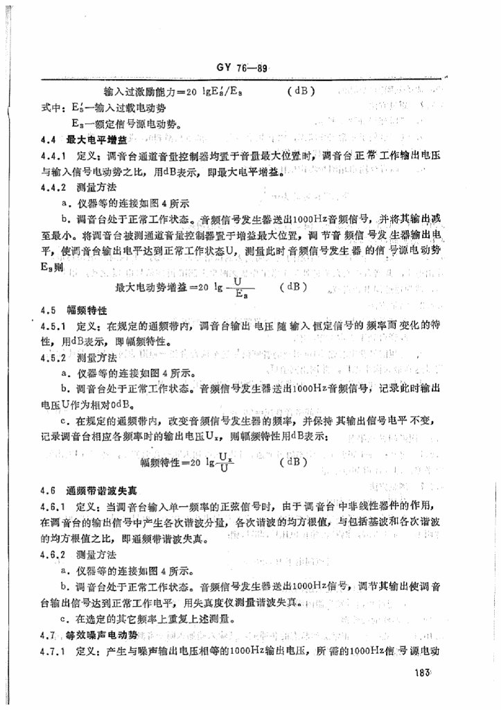 GY 76-1989 广播调音台电性能运行技术指标测量方法