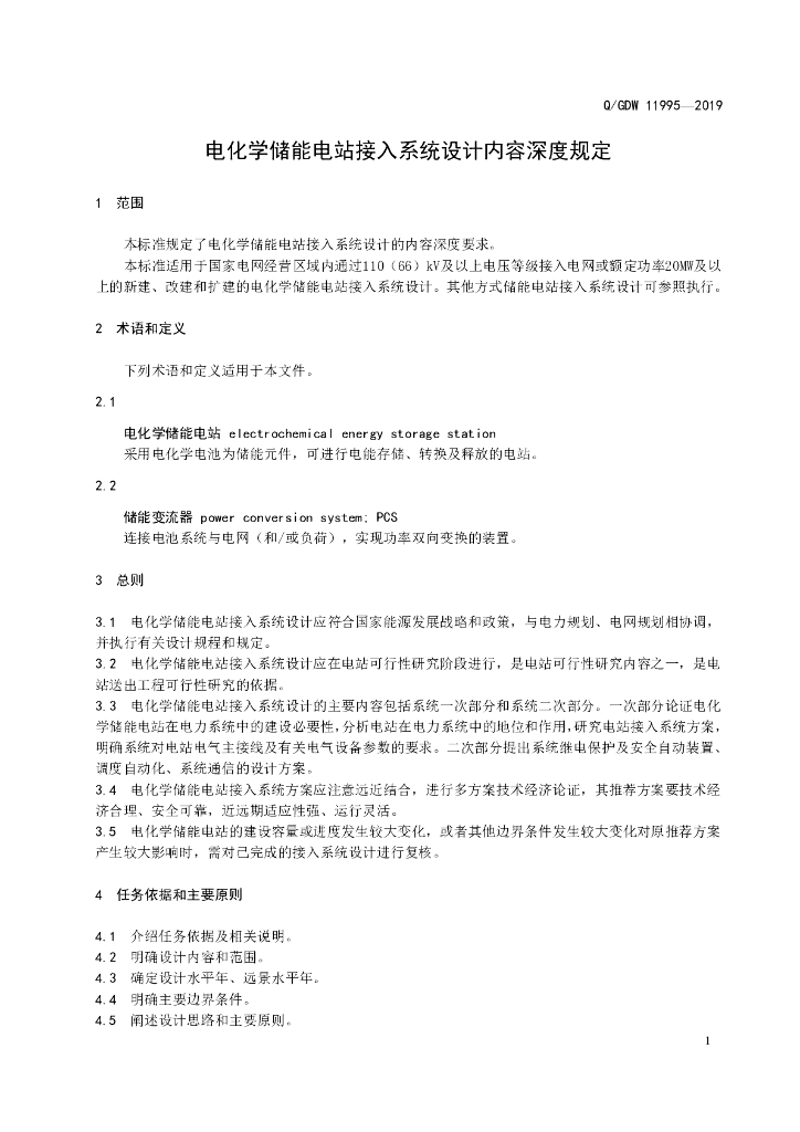 Q/GDW 11995-2019 电化学储能电站接入系统设计内容深度规定