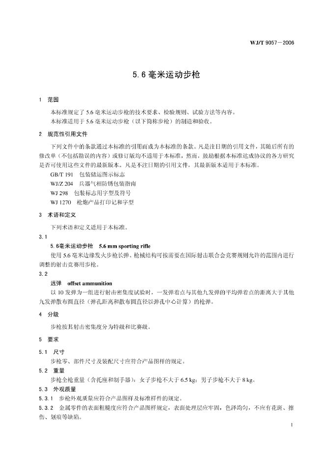 WJ/T 9057-2006 5.6毫米运动步枪