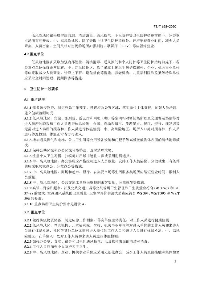 WS/T 698-2020 新冠肺炎疫情期间重点场所和单位卫生防护指南