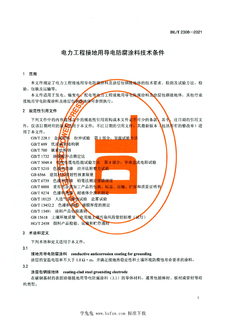 DL/T 2308-2021 电力工程接地用导电防腐涂料技术条件