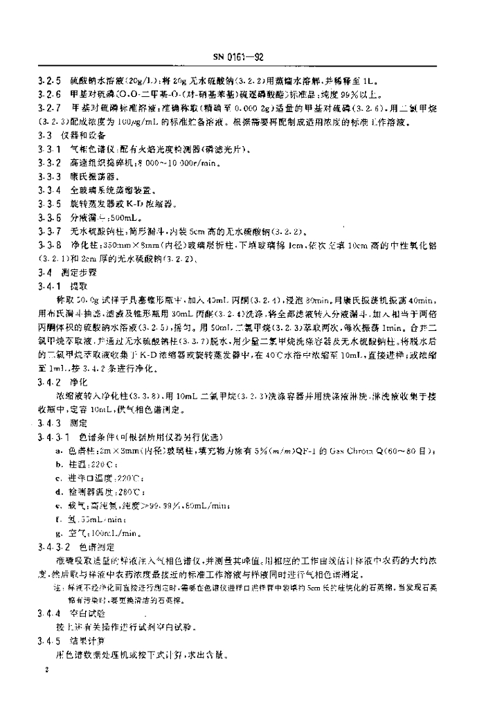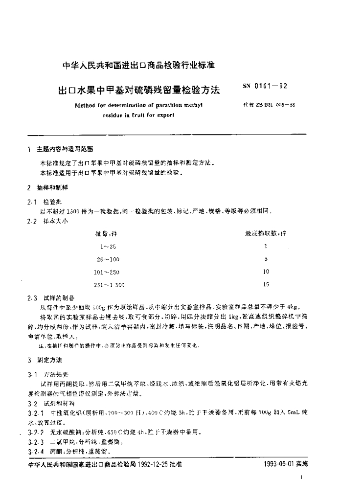 SN 0161-1992 出口水果中甲基对硫磷残留量检验方法