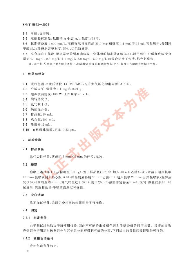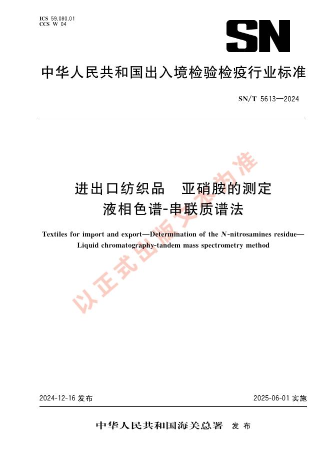 SN/T 5613-2024 进出口纺织品 亚硝胺的测定 液相色谱-串联质谱法