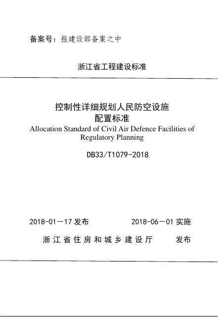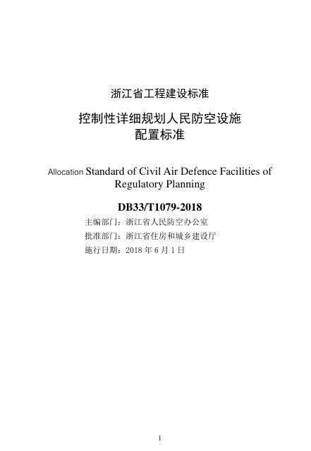 DB33/T 1079-2018 控制性详细规划人民防空设施配置标准