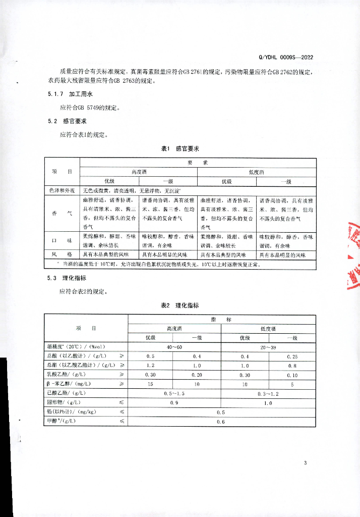 Q/YDHL 0009S-2022 米酱浓兼香型白酒