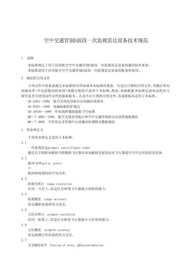 MH/T 4017-2004 空中交通管制S波段一次监视雷达设备技术规范