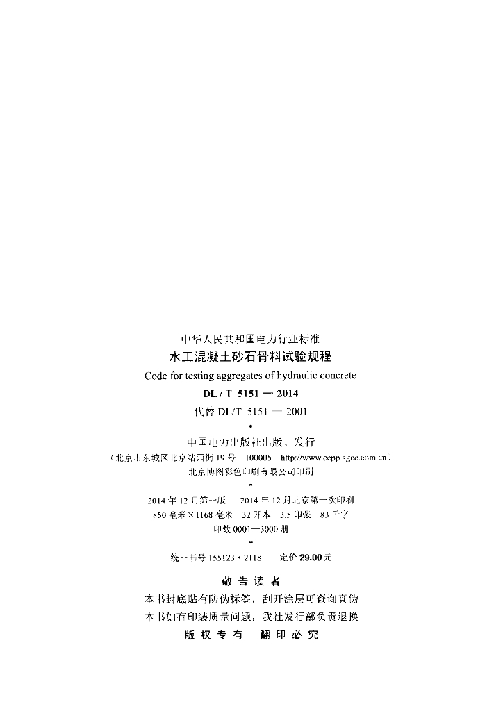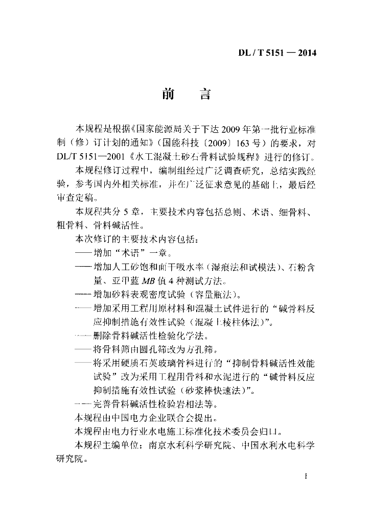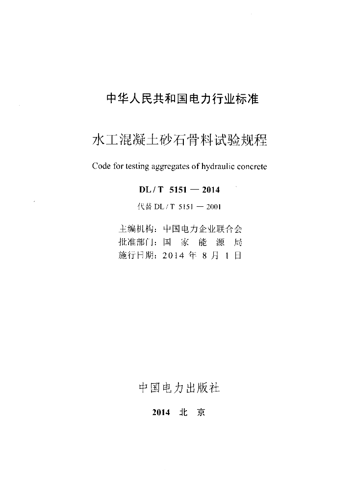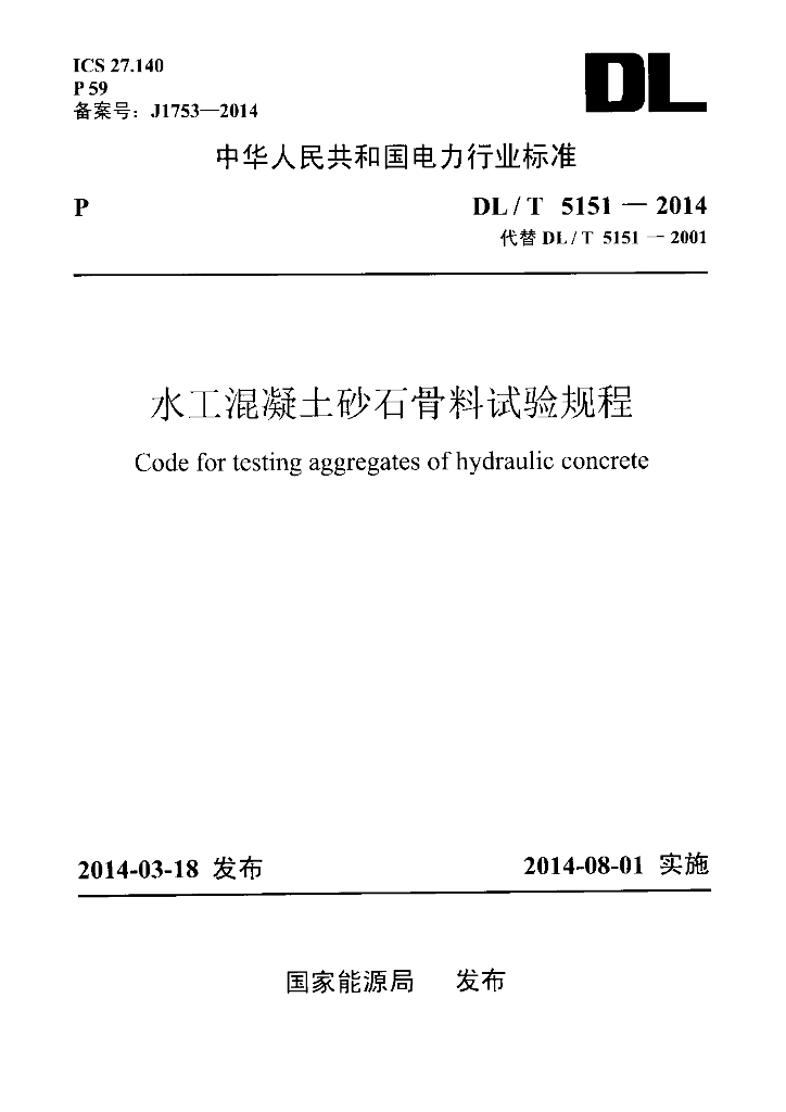 DL/T 5151-2014 水工混凝土砂石骨料试验规程(附条文说明)