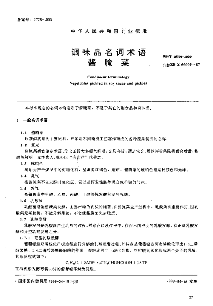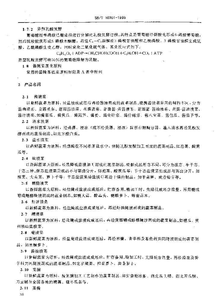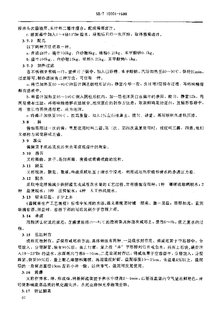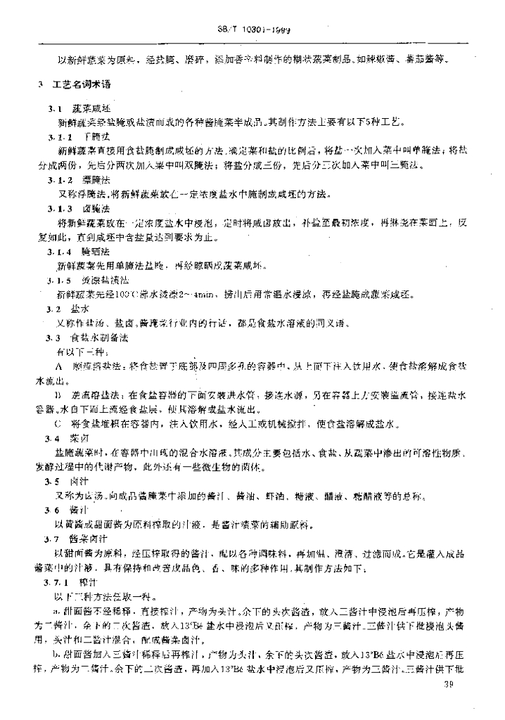 SB/T 10301-1999 调味品名词术语 酱腌菜