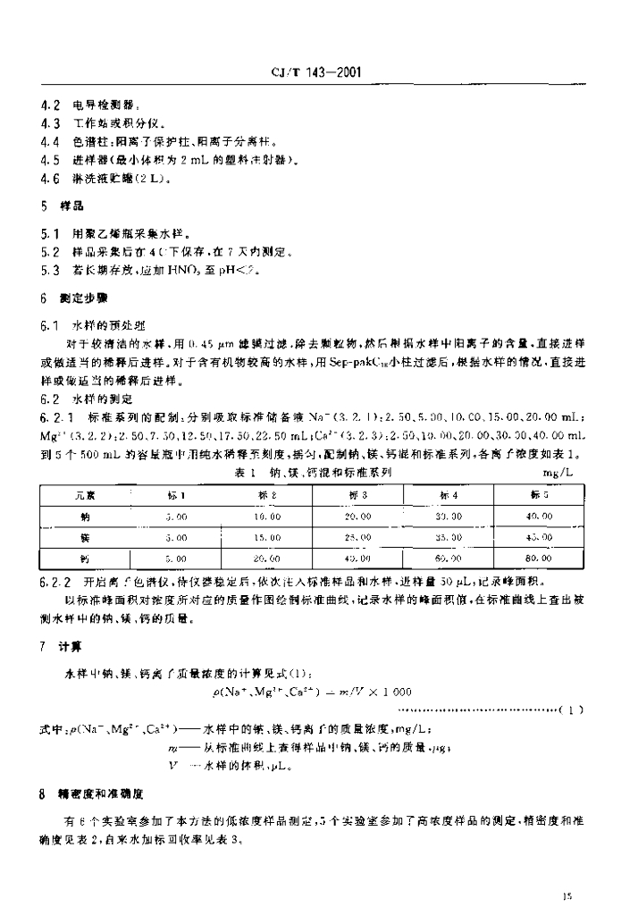CJ/T 143-2001 城市供水 钠、镁、钙的测定 离子色谱法