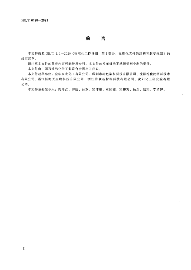 金华双宏化工有限公司、深圳市标色染料科技有限公司、沈阳沈化院测试技术有限公司、浙江新海天生物科技有限公司、浙江海联新材料科技有限公司、沈阳化工研究院有限公司