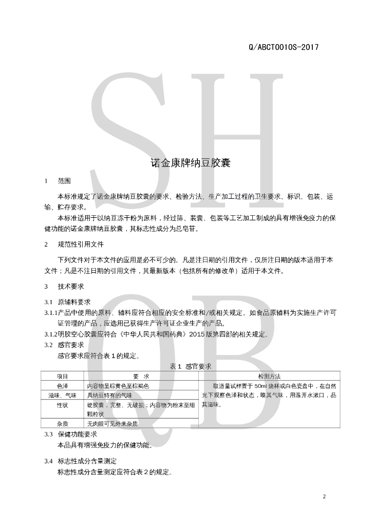Q/ABCT 0010S-2017 诺金康牌纳豆胶囊
