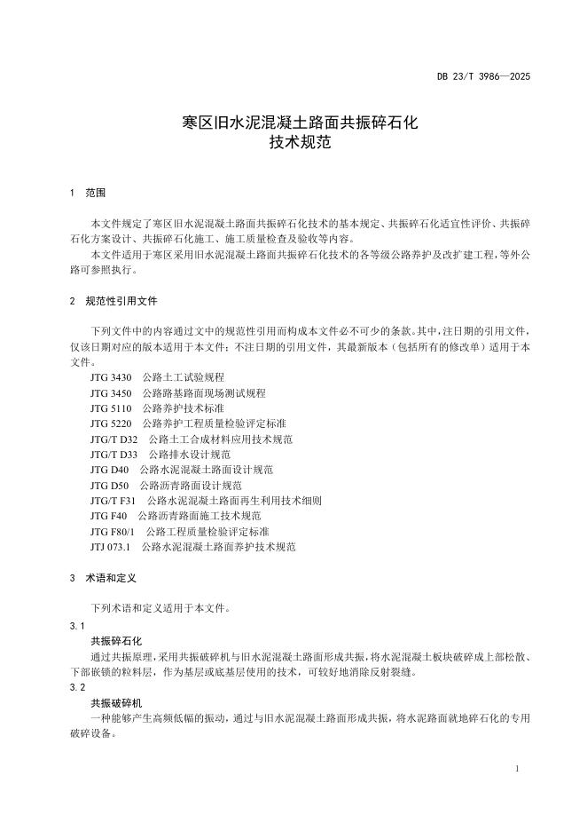 DB23/T 3986-2024 寒区旧水泥混凝土路面共振碎石化技术规范
