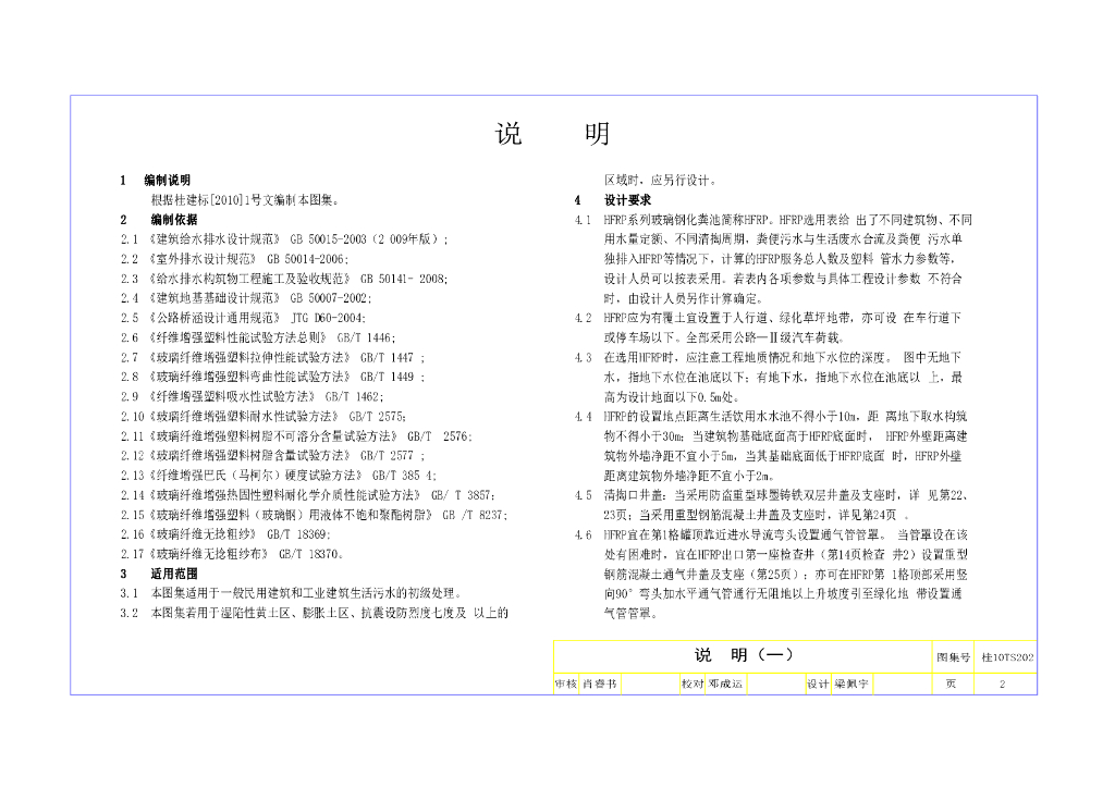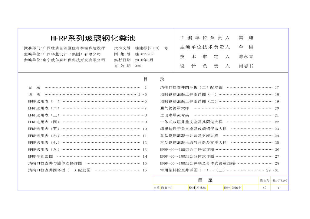 桂10TS501 HFRP系列玻璃钢化粪池图集