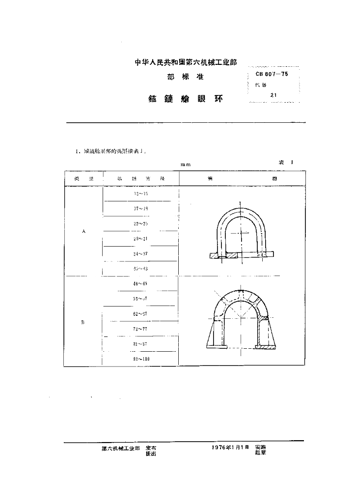 CB 807-1975 锚链舱眼环