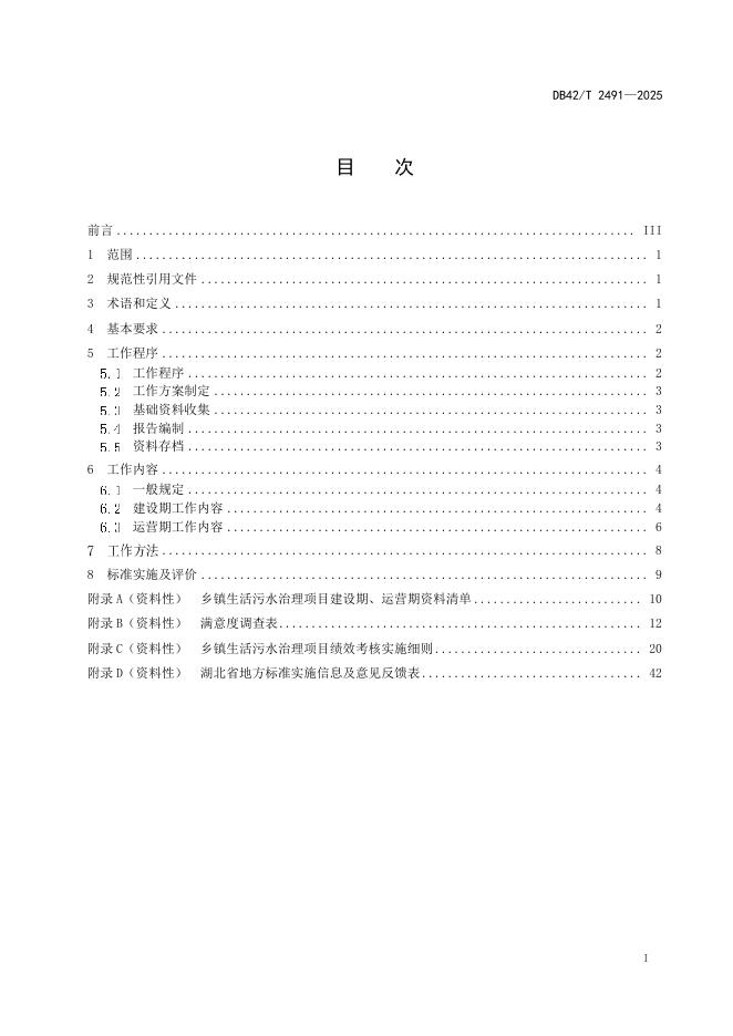 DB42/T 2491-2025 乡镇生活污水治理项目绩效标准
