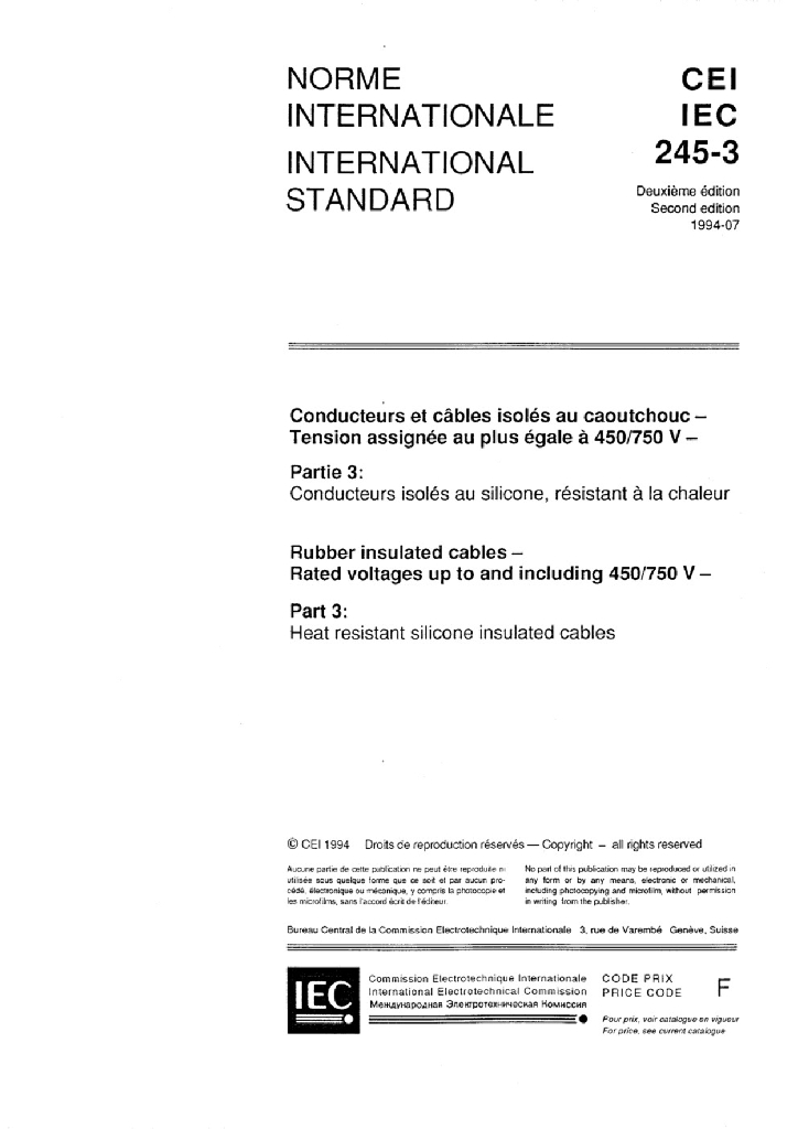 IEC 60245-3:1994+A1:1997+A2:2011 额定电压450/750V及以下橡皮绝缘电缆 第3部分 耐热硅橡胶绝缘电缆