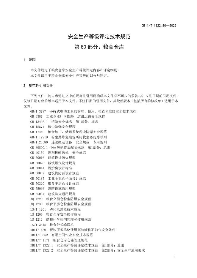 DB11/T 1322.80-2025 安全生产等级评定技术规范 第80部分:粮食仓库