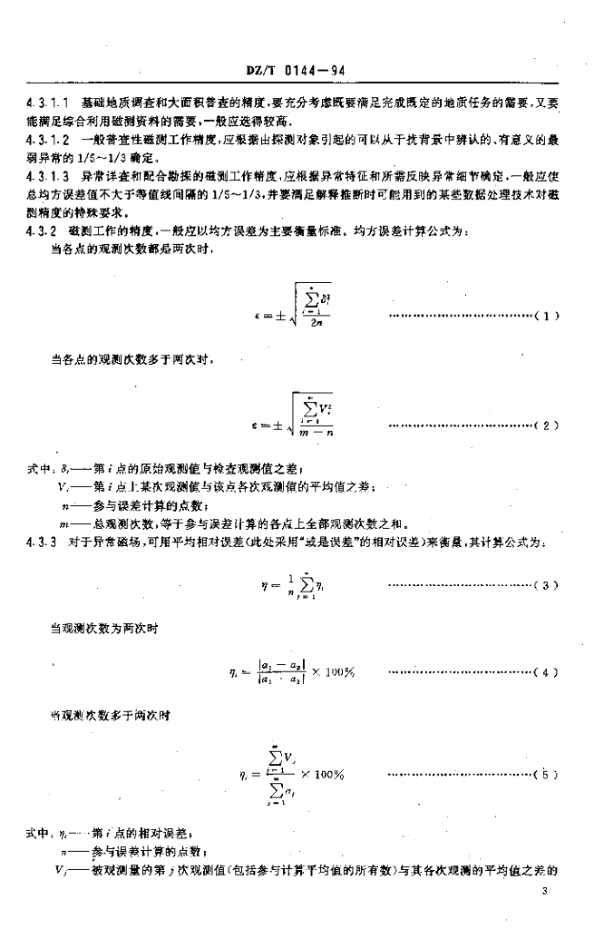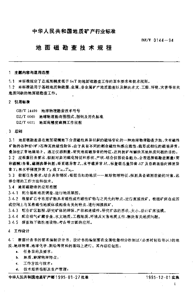 DZ/T 0144-1994 地面磁勘查技术规程