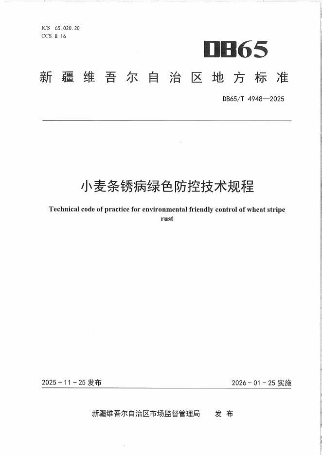 DB65/T 4948-2025 小麦条锈病绿色防控技术规程