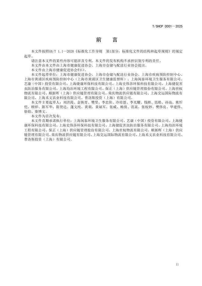 T/SHCP 0001-2025 仓储与城市配送单位有害生物综合管理指南