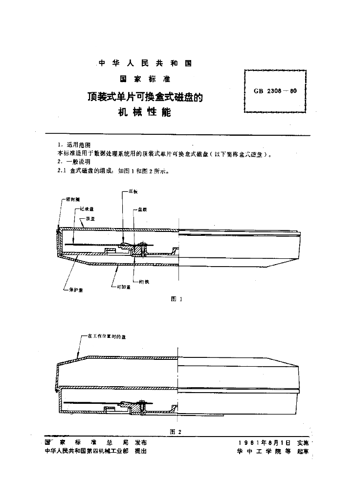 GB/T 2308-1980 顶装式单片可换盒式磁盘的机械性能