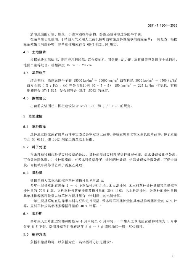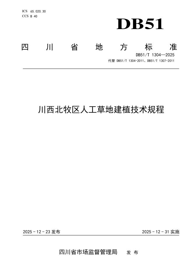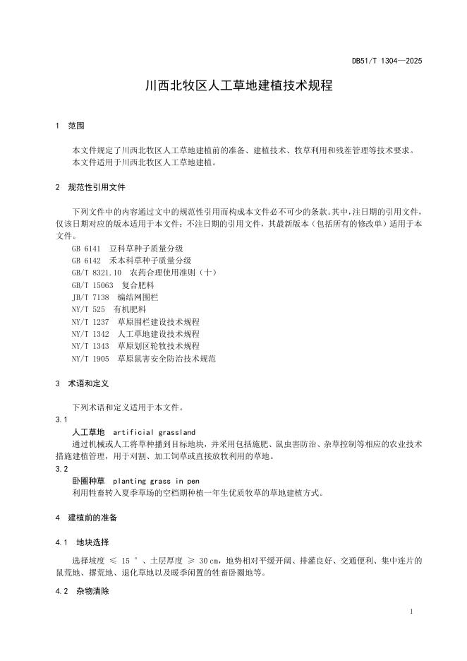 DB51/T 1304-2025 川西北牧区人工草地建植技术规程
