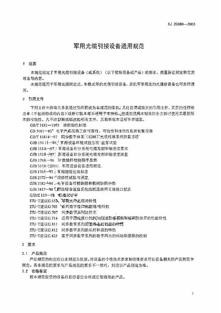SJ 20860-2003 军用光缆引接设备通用规范