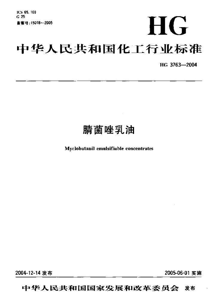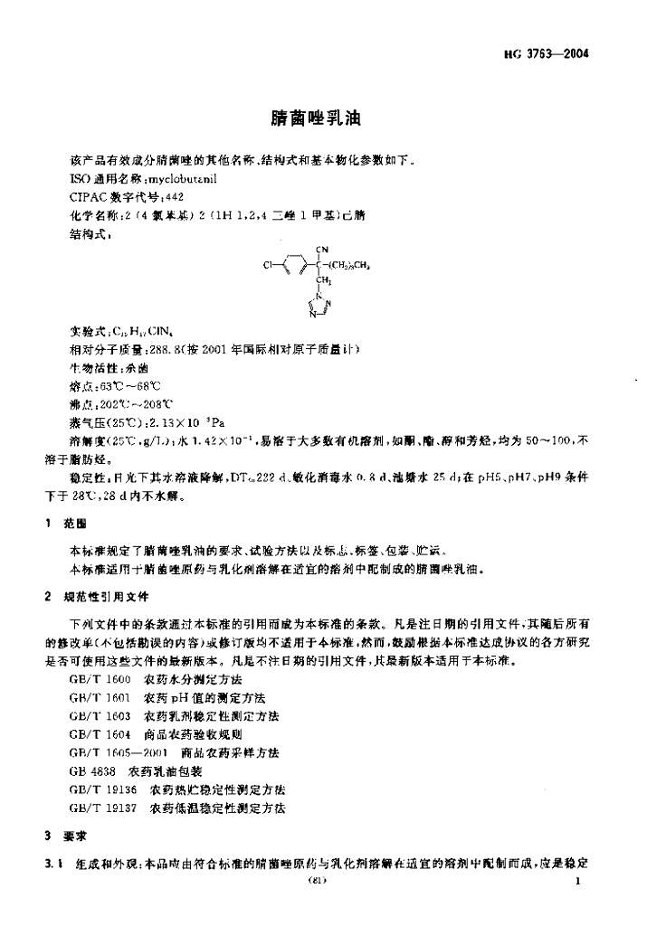 HG 3763-2004 腈菌唑乳油