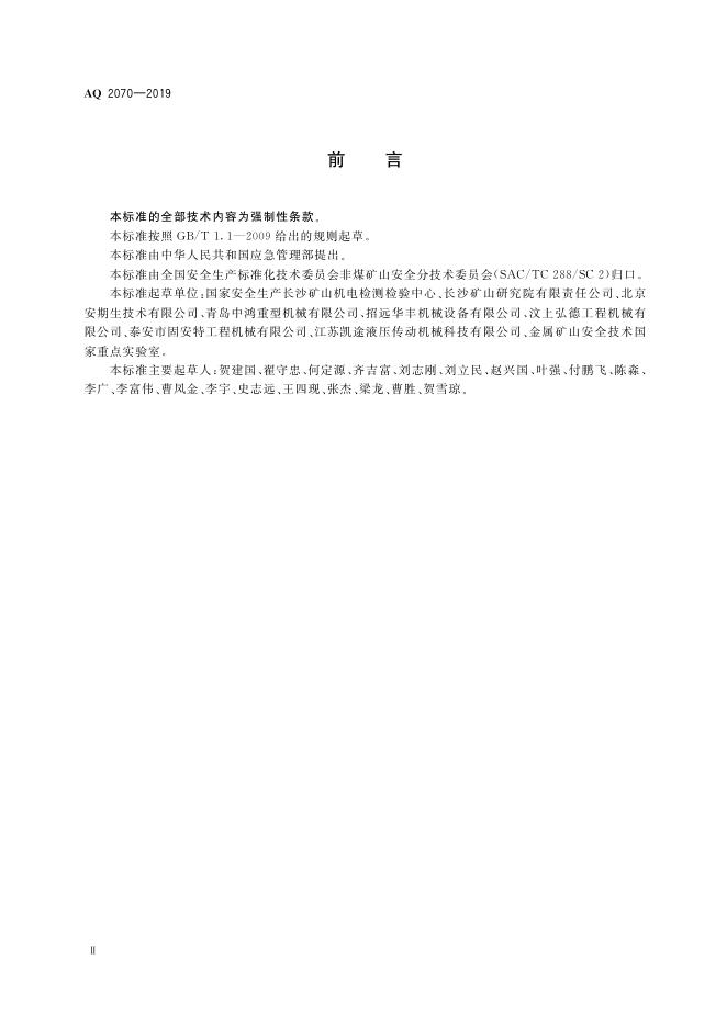 国家安全生产长沙矿山机电检测检验中心、长沙矿山研究院有限责任公司、北京安期生技术有限公司、青岛中鸿重型机械有限公司、招远华丰机械设备有限公司、汶上弘德工程机械有限公司、泰安市固安特工程机械有限公司、江苏凯途液压传动机械科技有限公司、金属矿山安全技术国家重点实验室