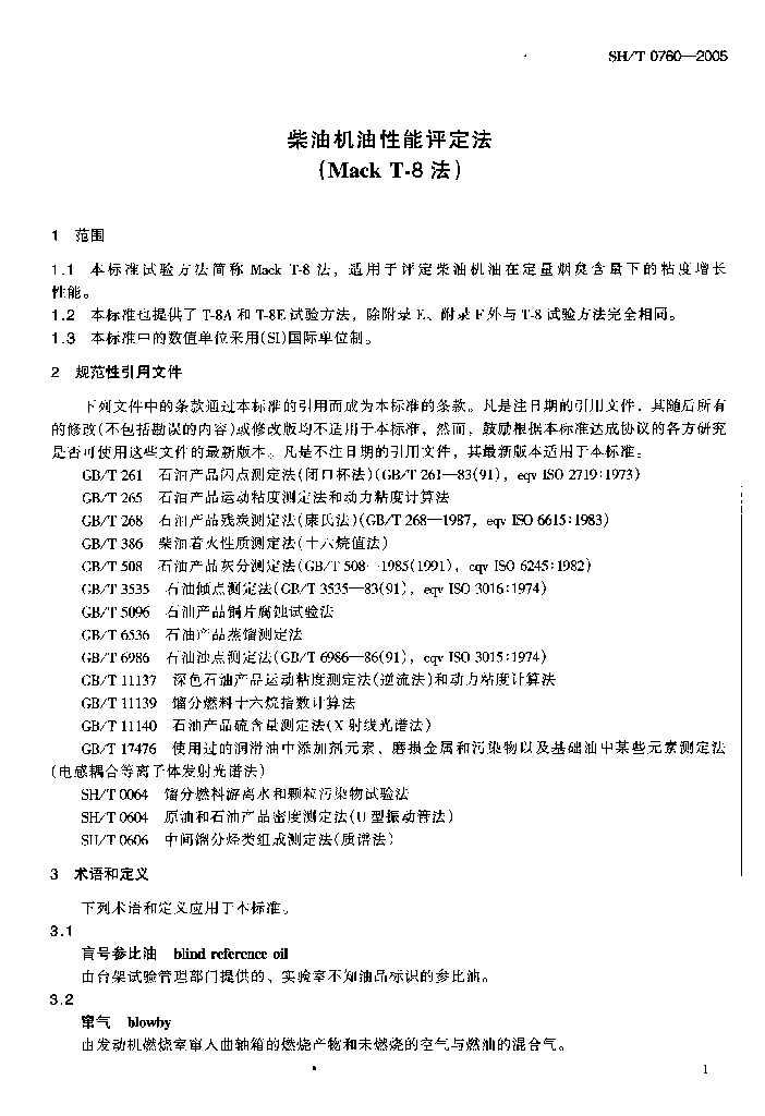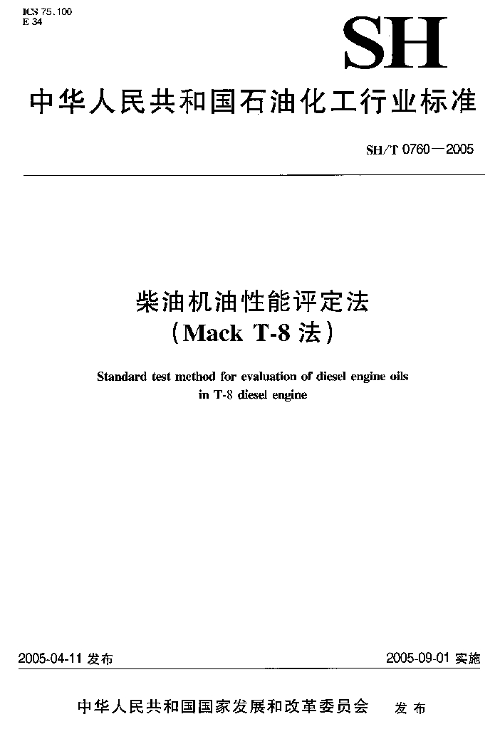 SH/T 0760-2005 柴油机油性能评定法(MackT-8法)