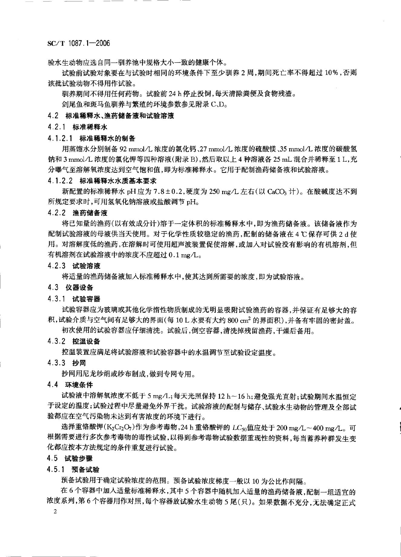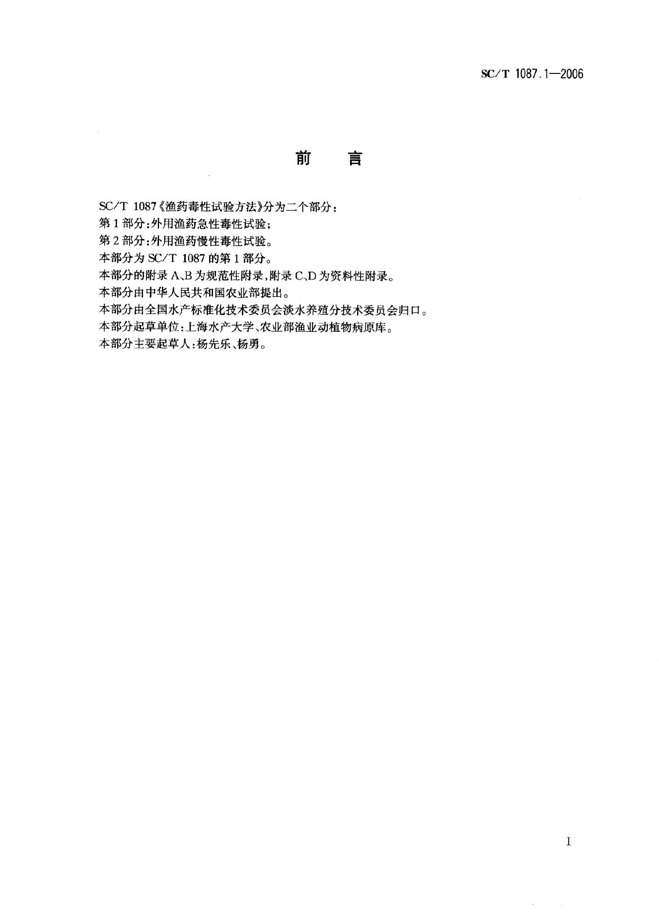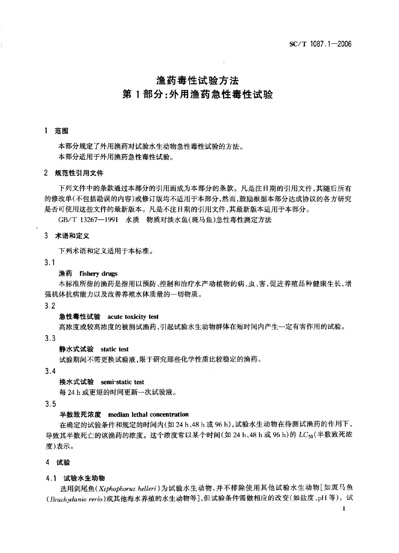 SC/T 1087.1-2006 渔药毒性试验方法 第1部分:外用渔药急性毒性试验