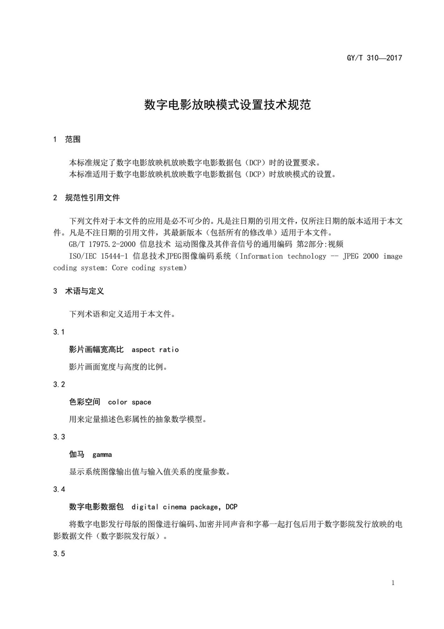 GY/T 310-2017 数字电影放映模式设置技术规范