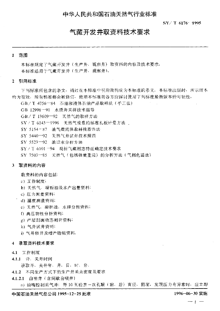 SY/T 6176-1995 气藏开发井取资料技术要求