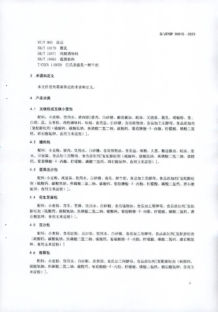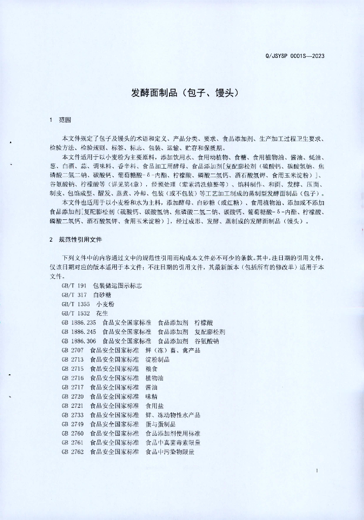Q/JSYSP 0001S-2023 发酵面制品(包子、馒头)