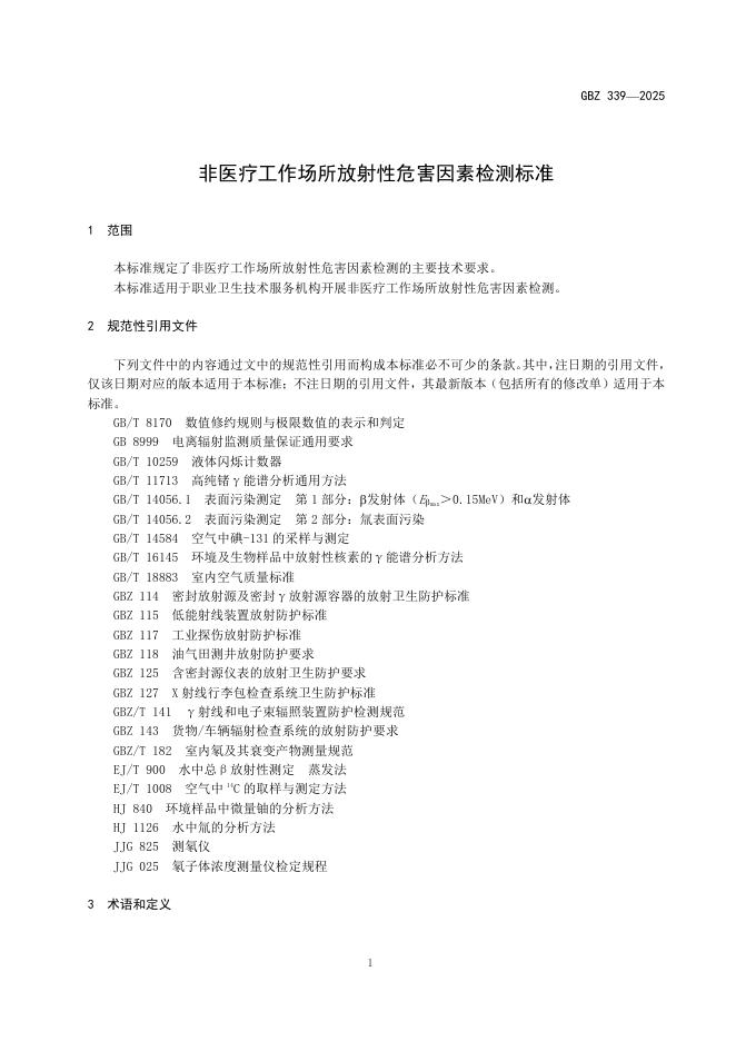 GBZ 339-2025 非医疗工作场所放射性危害因素检测标准