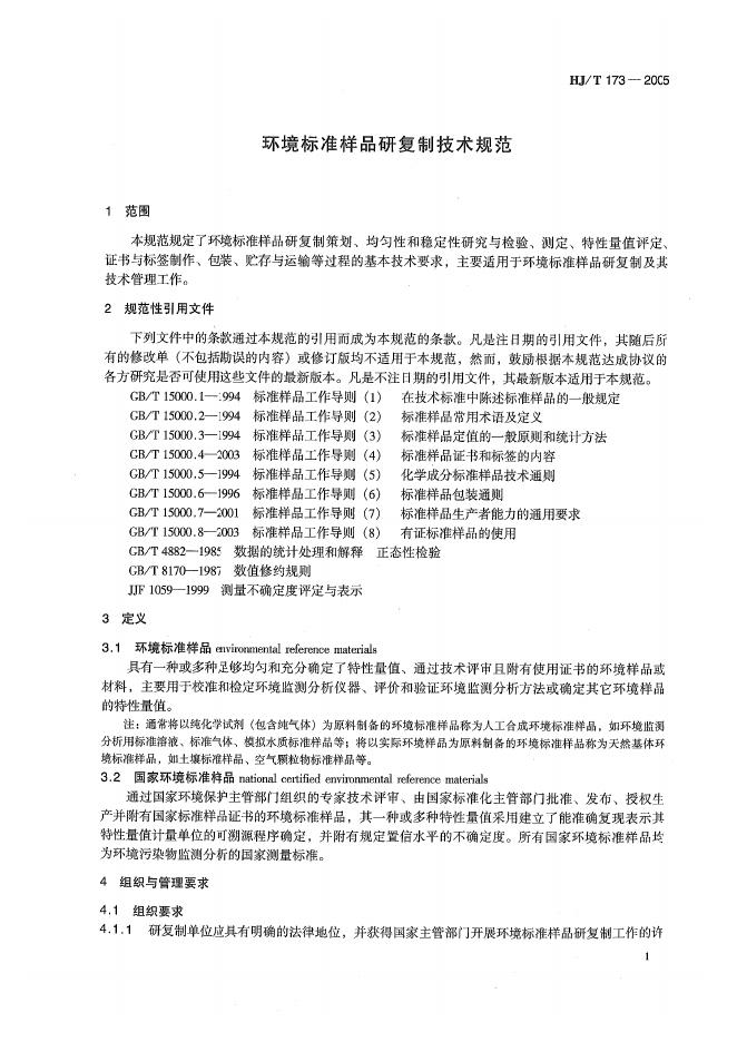 HJ/T 173-2005 环境标准样品研复制技术规范