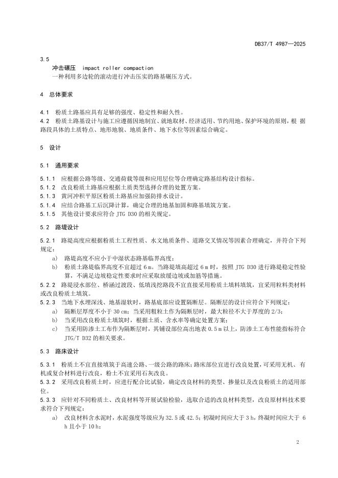 DB37/T 4987-2025 黄河冲积平原粉质土路基设计施工技术规范