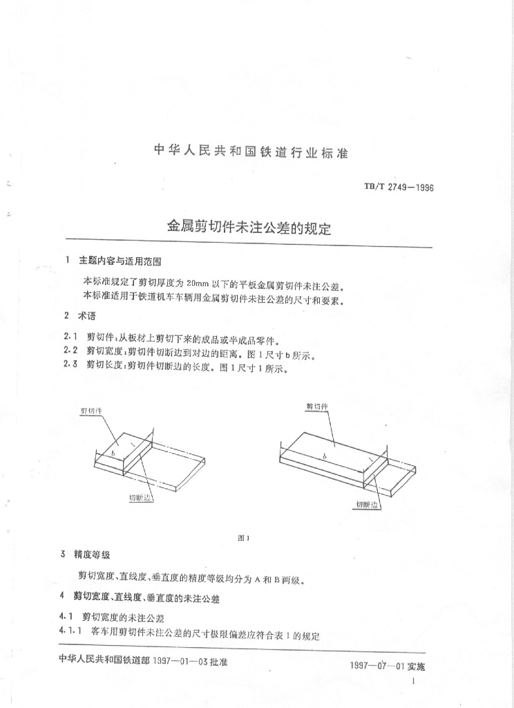 TB/T 2749-1996 金属剪切件未注公差的规定